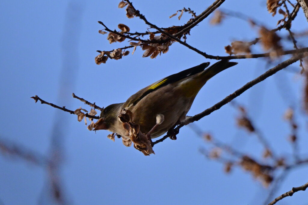 公園のアキニレの木は実が沢山なって居ます。その実を食べに沢山の鳥たちがやってきています。