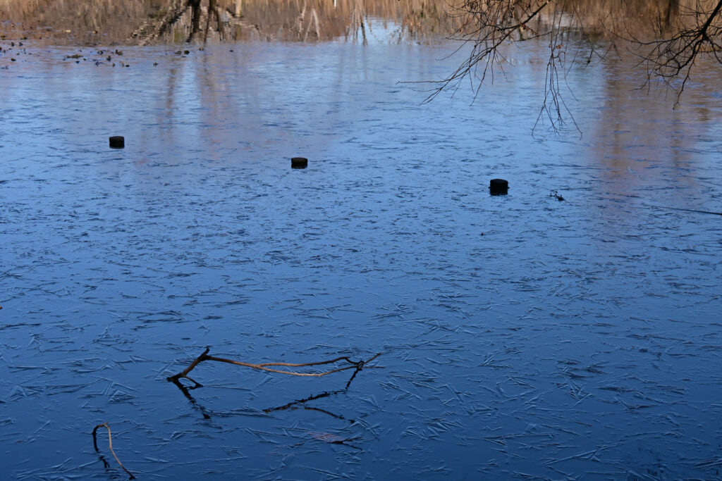 今朝は昨日より冷えたようで池は半分くらい結氷していました。結氷するとカワセミや鴨達は餌取りに苦労します。