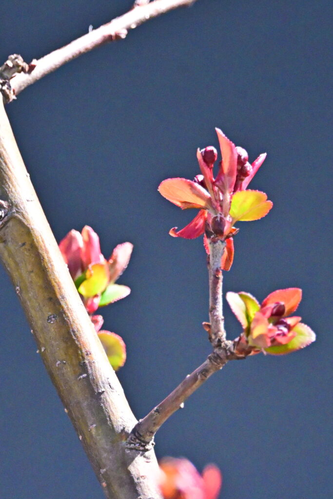 雨降りのおかげで急に木々の新芽が吹き出してきました。我が家の花海棠の木は先週はまるで枯れ木のようでしたが今日見たら新芽の中に蕾が膨らんでいます。ここ数日で急に新緑らしくなってきました。「啓蟄」ですから虫だけで無く植物も動き出したようです。