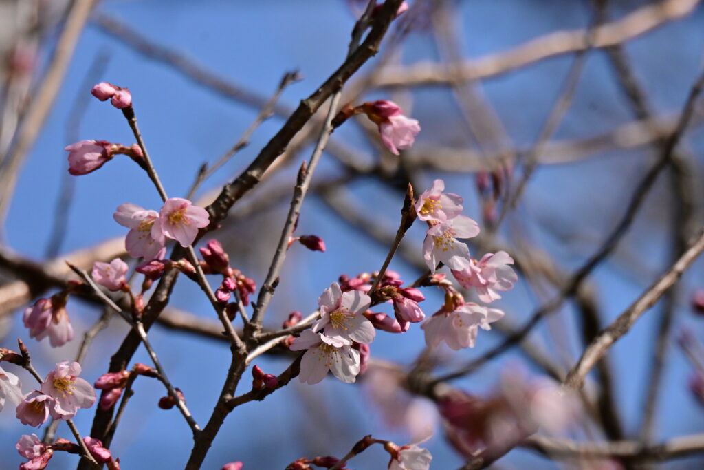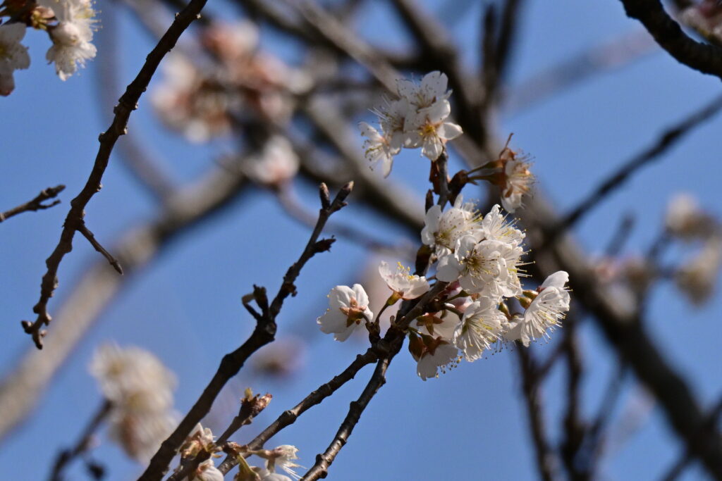 公園の桜はマメザクラとサクランボがなる園芸種?が咲いていました。