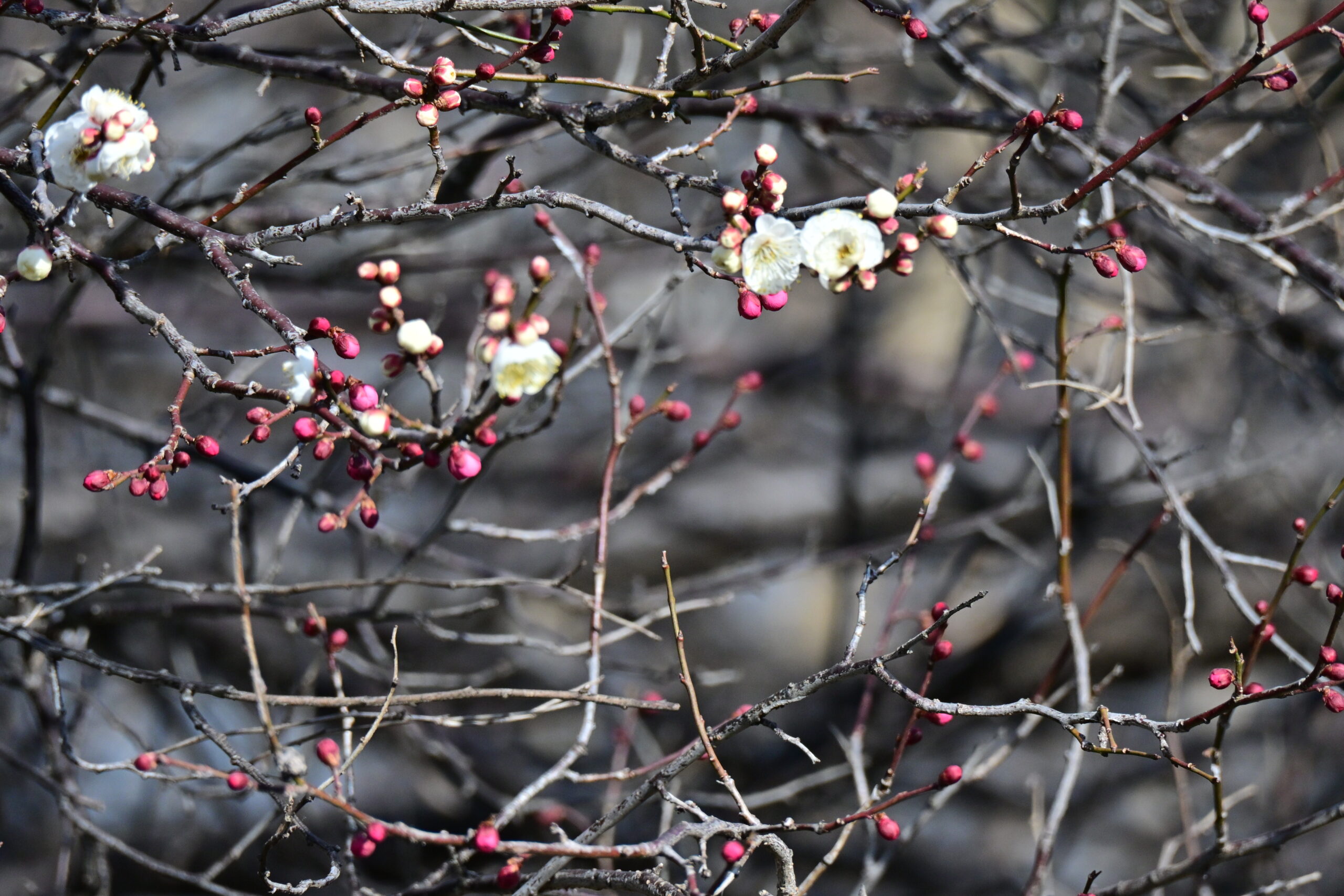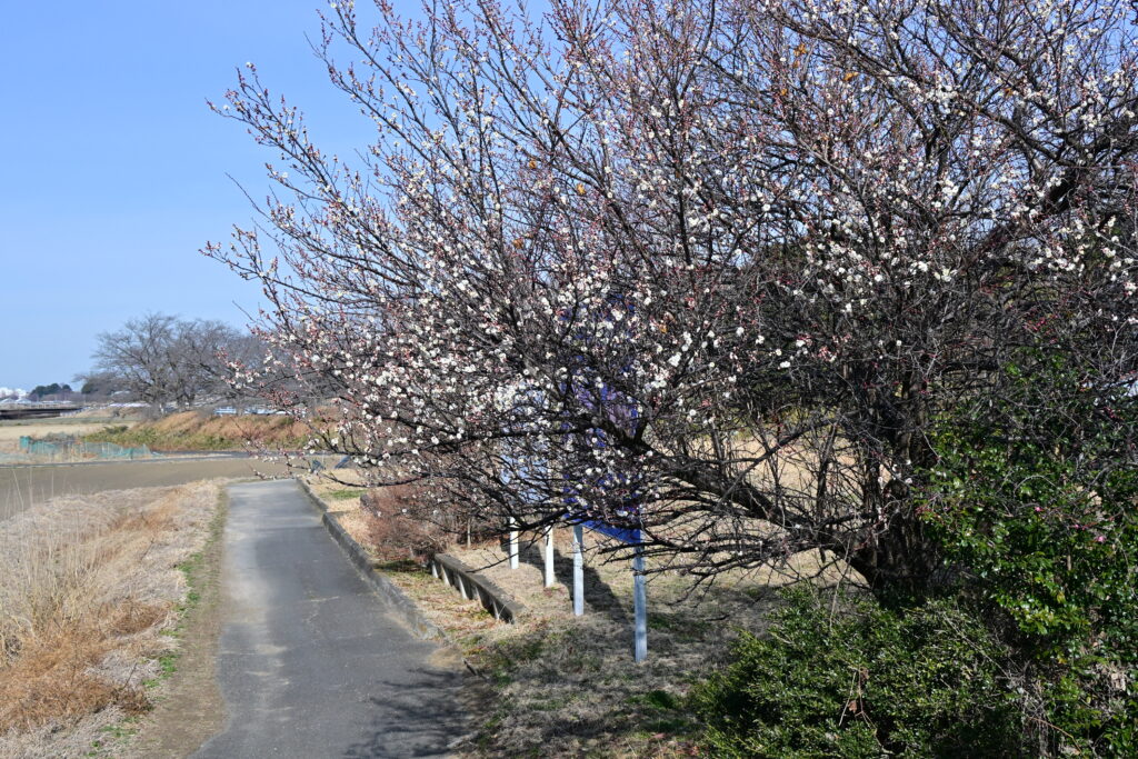 臘梅は咲き終わり、紅梅の花もそろそろ茶色になってきました。白梅が咲き出しました。見沼田んぼの端にある梅は毎年一本の木で紅梅と白梅が枝違いで咲きます。今年は白梅が先に咲き出しました。