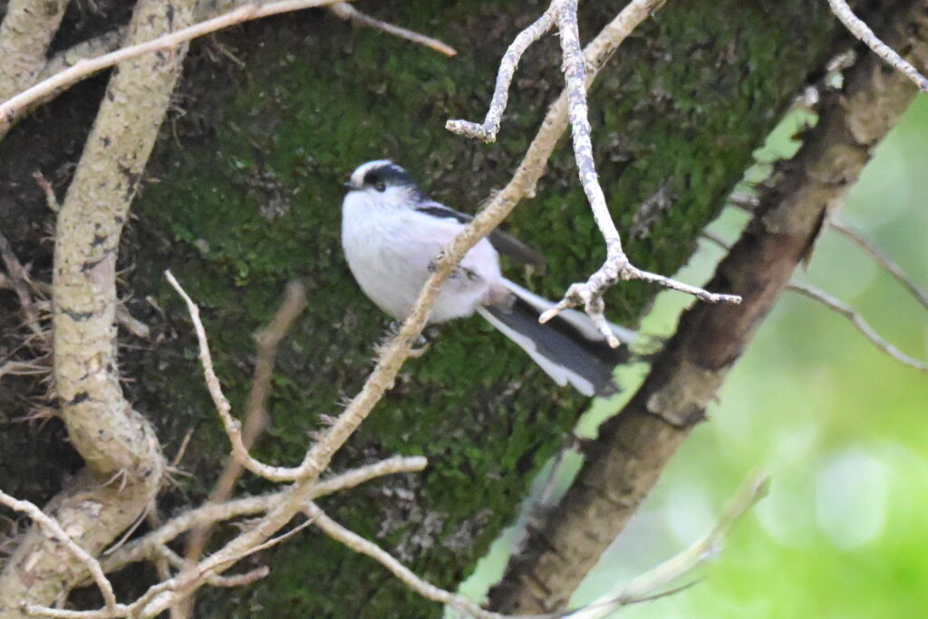 エナガの群れが飛び回っています。早くて追いかけるのが大変です。