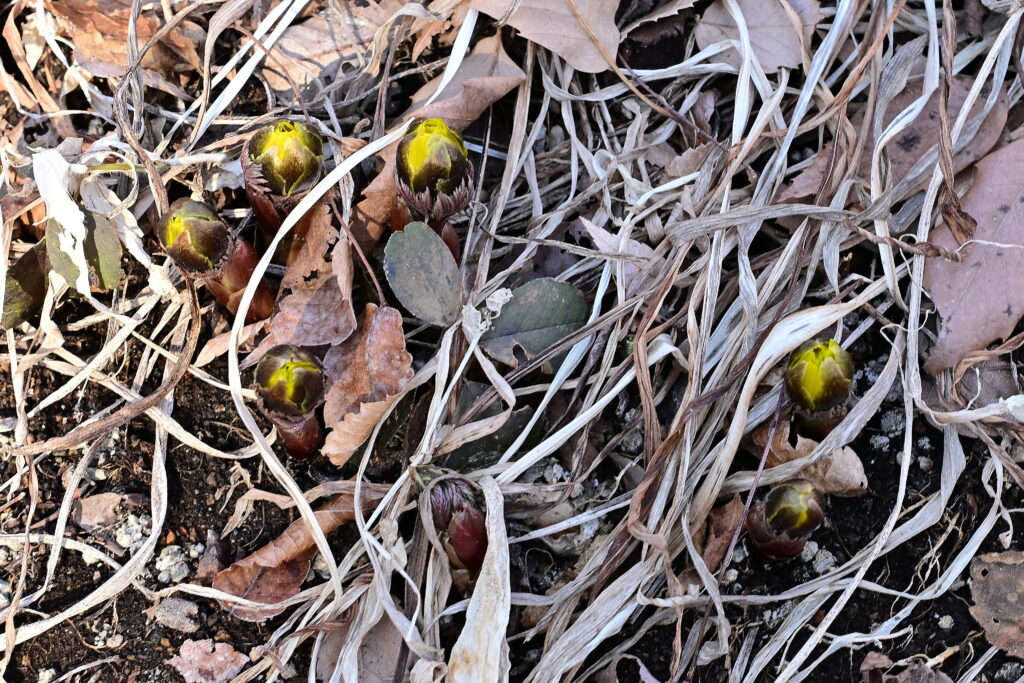 庭だけ見てきました。春間近で芽が出ているかと想いましたが福寿草だけが花芽が膨らんで後10日もすれば花を咲かせる状況で、他の花たちはまだまだ眠りについているようです。クリスマスローズは春の新芽が出始めていますが、極度の乾燥で元気のない新芽がでて花が咲くか心配です。