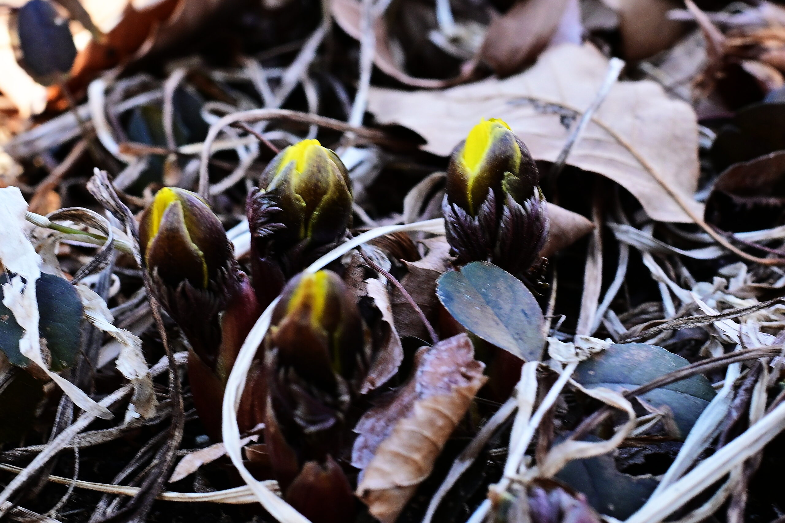 庭だけ見てきました。春間近で芽が出ているかと想いましたが福寿草だけが花芽が膨らんで後10日もすれば花を咲かせる状況で、他の花たちはまだまだ眠りについているようです。クリスマスローズは春の新芽が出始めていますが、極度の乾燥で元気のない新芽がでて花が咲くか心配です。