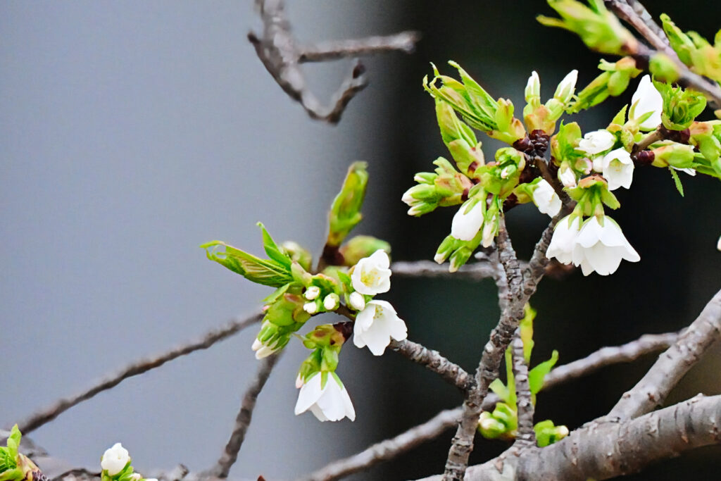 毎年ソメイヨシノより先に咲く真っ白なオオシマザクラ